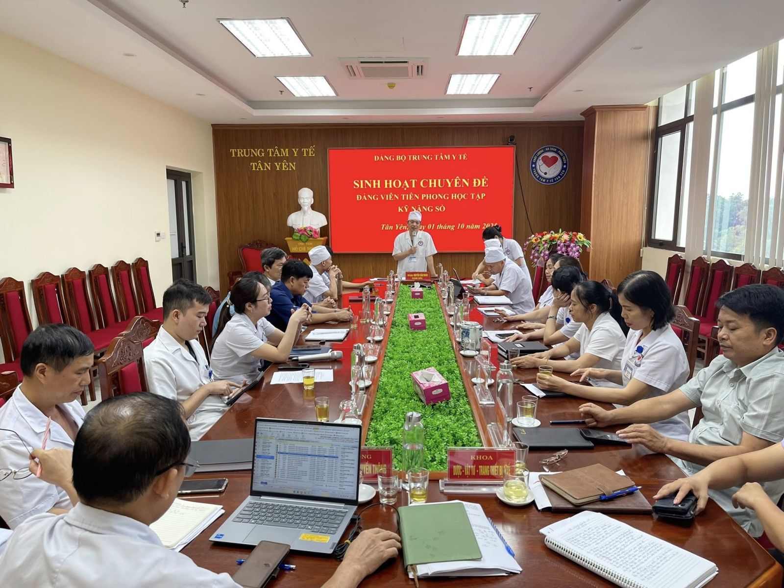 Chiều ngày 01/10/2025, Đảng uỷ Trung tâm Y tế Tân Yên tổ chức hội nghị sinh hoạt chuyên đề thực hiện Phong trào “Bình dân học vụ số” với chủ đề “Đảng viên tiên phong học tập kỹ năng số”. Đồng chí Nguyễn Văn Hoàn – Uỷ viên BCH Đảng bộ xã Tân Yên – Bí thư Đảng bộ - Giám đốc Trung tâm Y tế Tân Yên dự và chỉ đạo hội nghị.