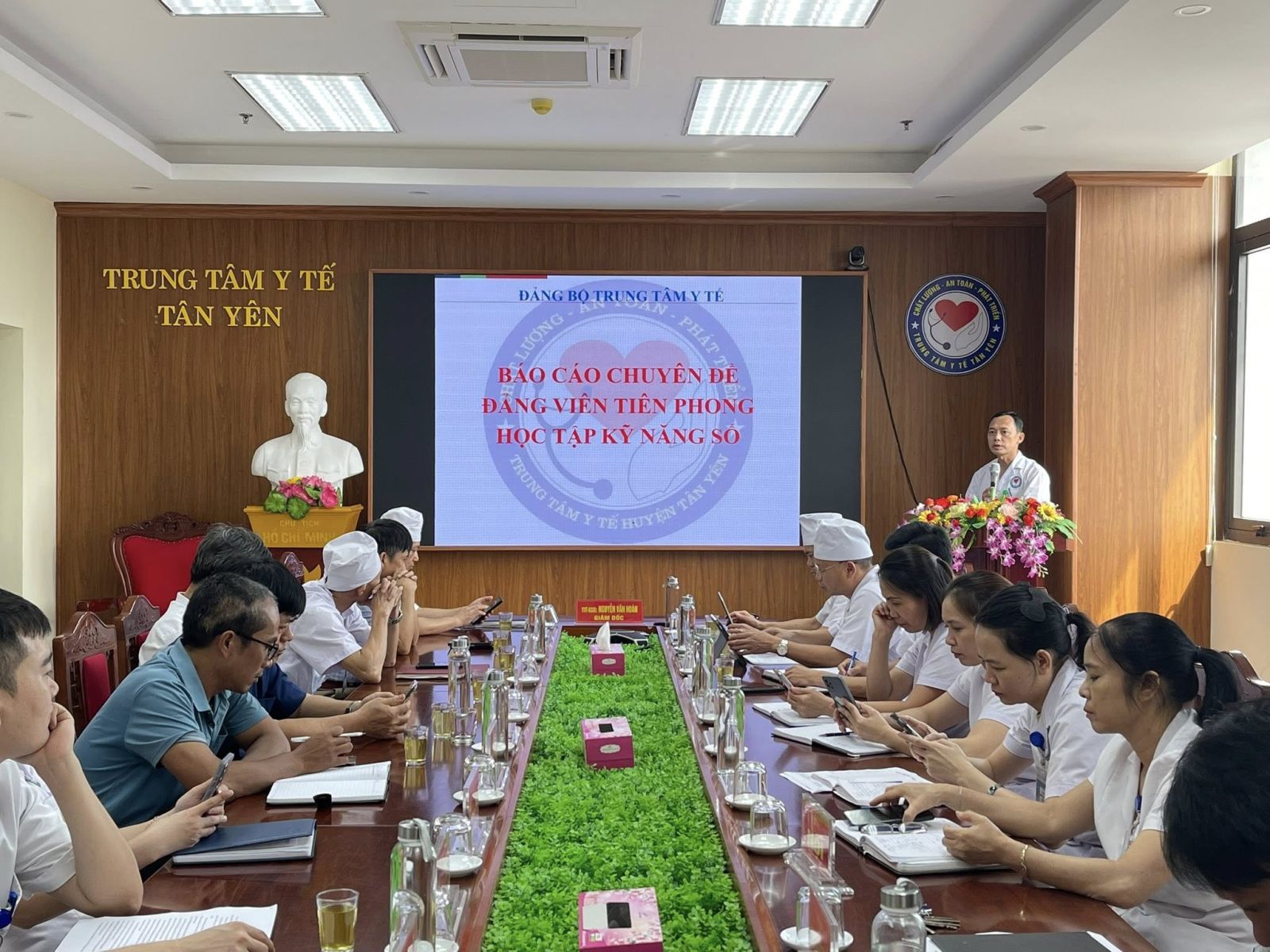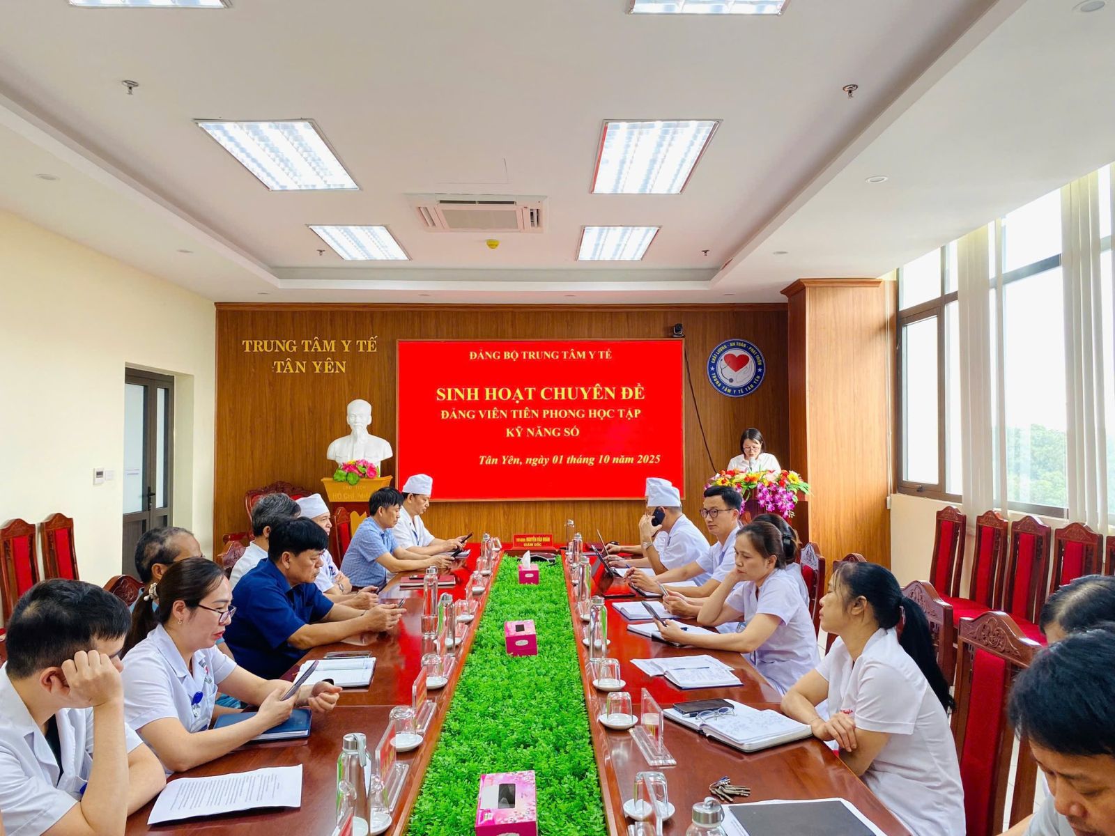 Chiều ngày 01/10/2025, Đảng uỷ Trung tâm Y tế Tân Yên tổ chức hội nghị sinh hoạt chuyên đề thực hiện Phong trào “Bình dân học vụ số” với chủ đề “Đảng viên tiên phong học tập kỹ năng số”. Đồng chí Nguyễn Văn Hoàn – Uỷ viên BCH Đảng bộ xã Tân Yên – Bí thư Đảng bộ - Giám đốc Trung tâm Y tế Tân Yên dự và chỉ đạo hội nghị.
