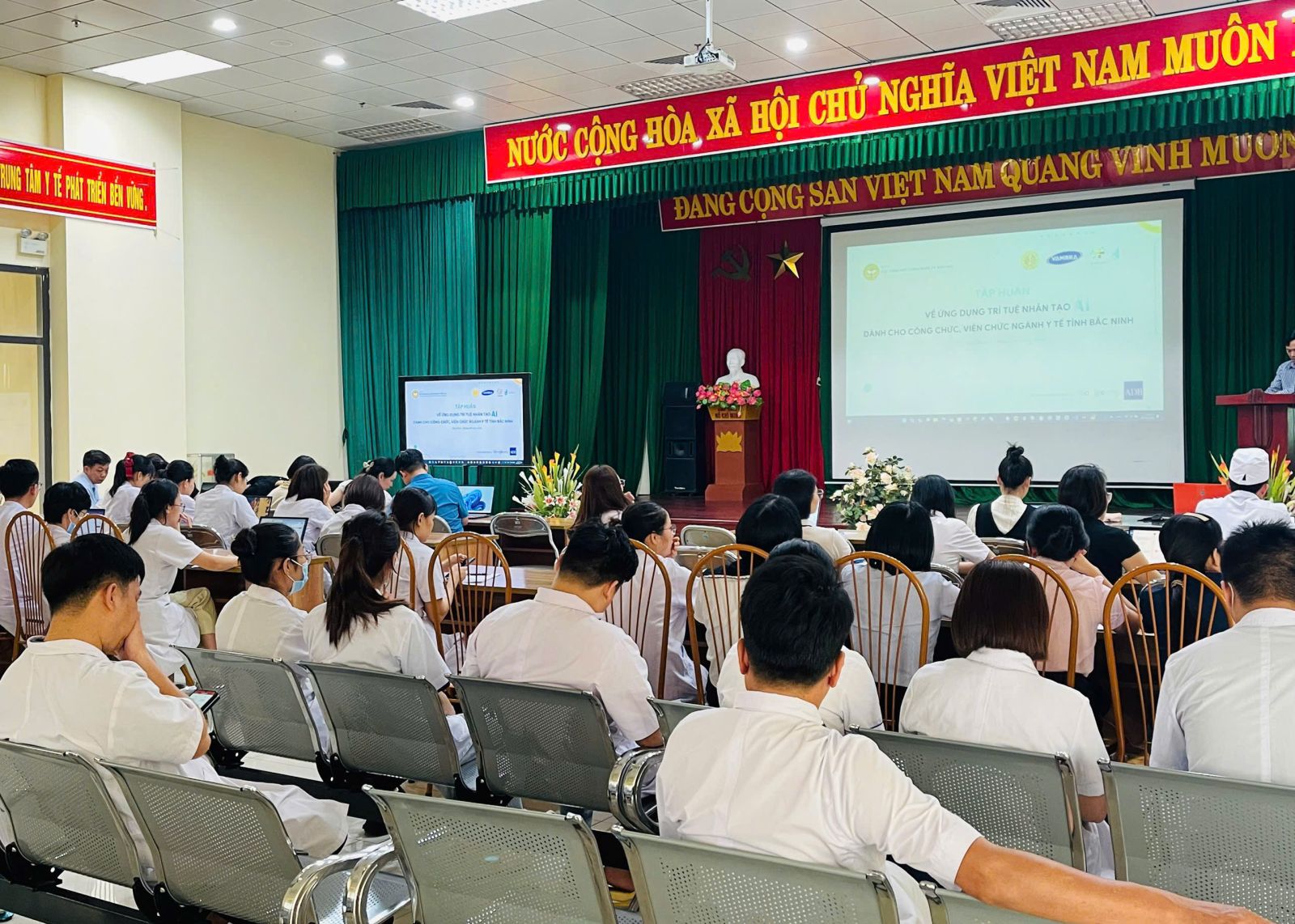 Buổi tập huấn có sự tham gia của Ban Giám đốc, lãnh đạo các khoa, phòng cùng đông đảo cán bộ, viên chức, người lao động của Bệnh viện Đa khoa Tân Yên và Bệnh viện Đa khoa Lạng Giang. Giảng viên của chương trình đến từ Công ty Cổ phần Hành trình Việt Nam Khỏe Mạnh (VietHealth) - đơn vị đồng hành trong hoạt động đào tạo, hỗ trợ nâng cao kỹ năng ứng dụng AI trong môi trường làm việc hiện đại.